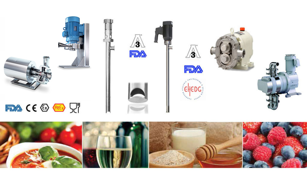 Tutte le pompe sono disponibili per alimentari, farmaceutiche e cosmetiche con certificazione 3A e EHEDG.