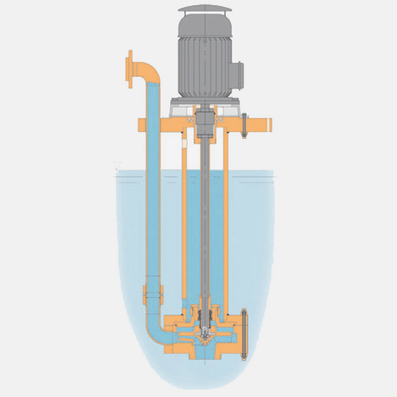 Pompe centrifughe ad asse verticale progettate per trasferire soluzioni acide o alcaline, fluidi corrosivi contaminati o con presenza di solidi in sospensione provenienti da pozzetti, serbatoi di stoccaggio o bacini.
